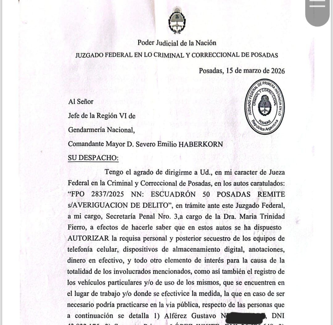 En ese contexto, y según pudo reconstruir este diario a partir del análisis de la orden de allanamiento y fuentes vinculadas a la investigación, uno de los domicilios allanados pertenecería a la Presidente de Energía de Misiones, Virginia Kluka.